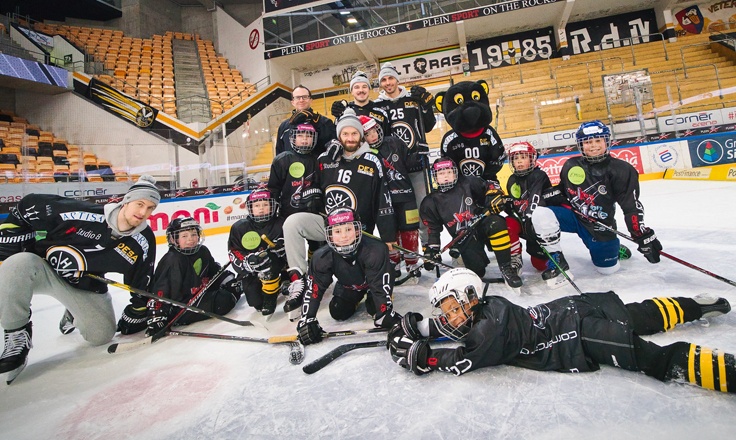 Eishockey-Event für Kinder zwischen 6 und 13 Jahren: Die kleinen Hockeyaner trainieren und spielen einen Tag lang mit den Erstligaspielern des Hockey Club Lugano in der Cornèr Arena.